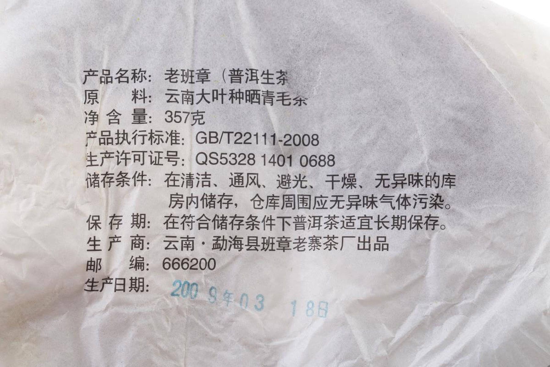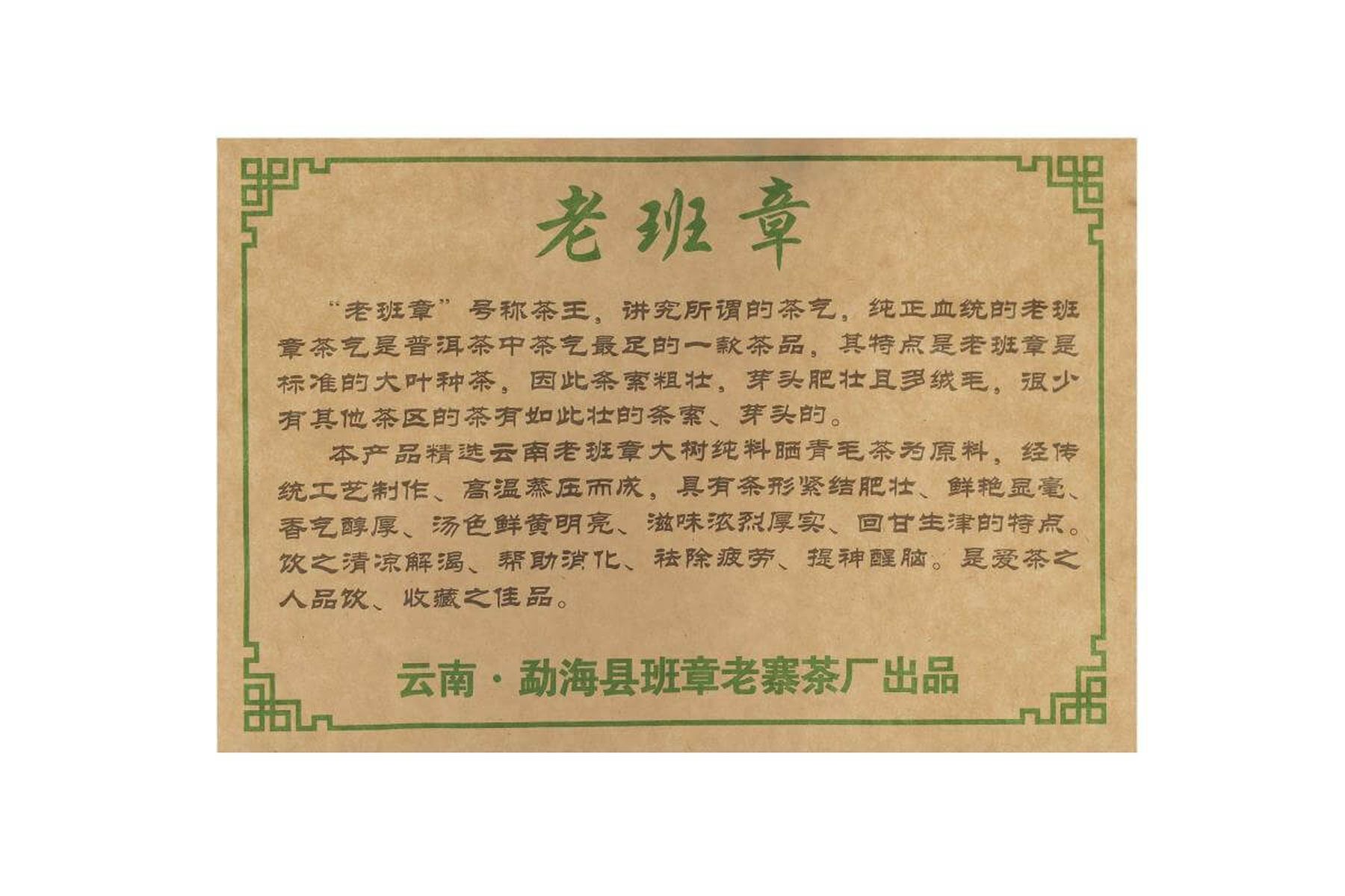 Баньчжан лао чжай чачан (云南勐海县班章老寨茶厂) |