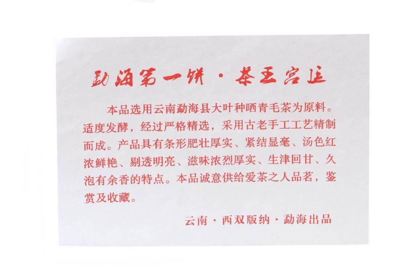 Вкус готового чая шелковистый и мягкий с оттенком влажной древесины и сладковатой ноткой вишневого сока. Данный шу пуэр способен выдержать 6 полноценных проливов при соотношении 5-7 граммов на чайник или гайвань объемом 150-200 мл. Вкус чая стойкий и ровный, на протяжении всего чаепития практически не изменчив.